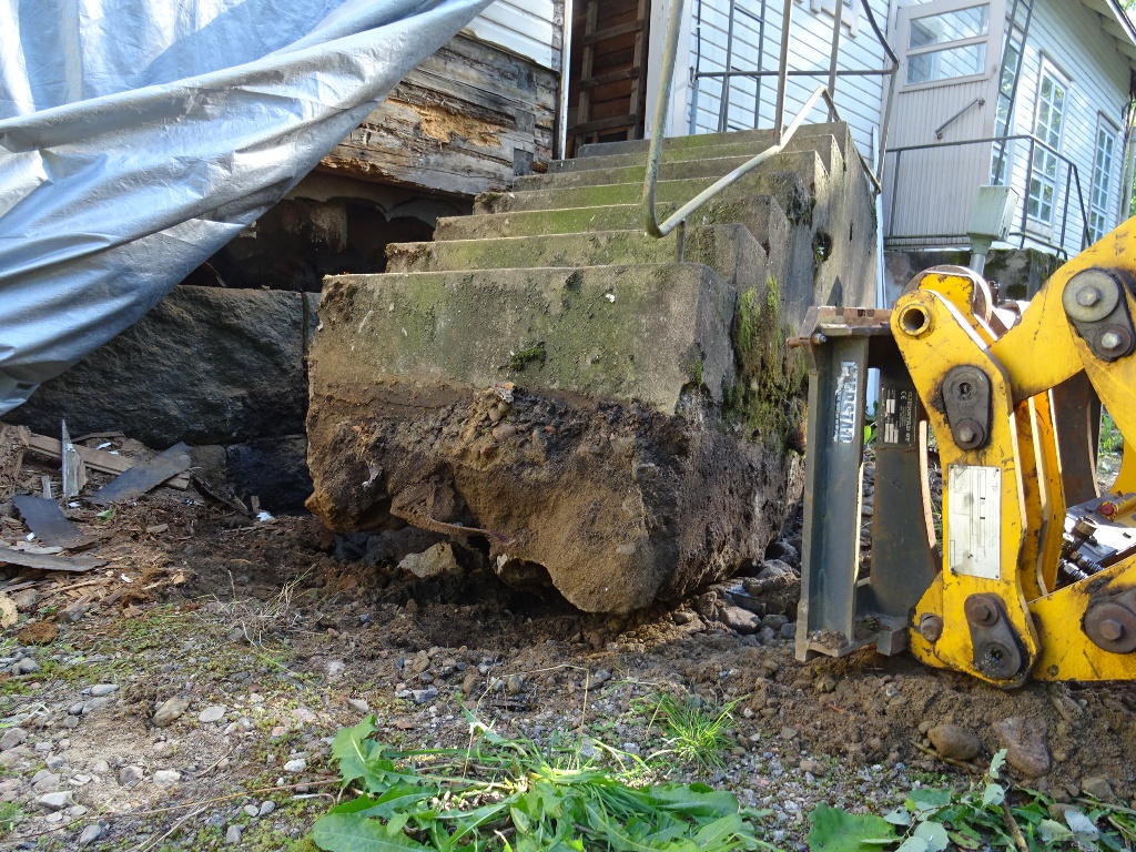Betoniportaat pois odottamaan myöhempääkäyttöä puutarhassa.