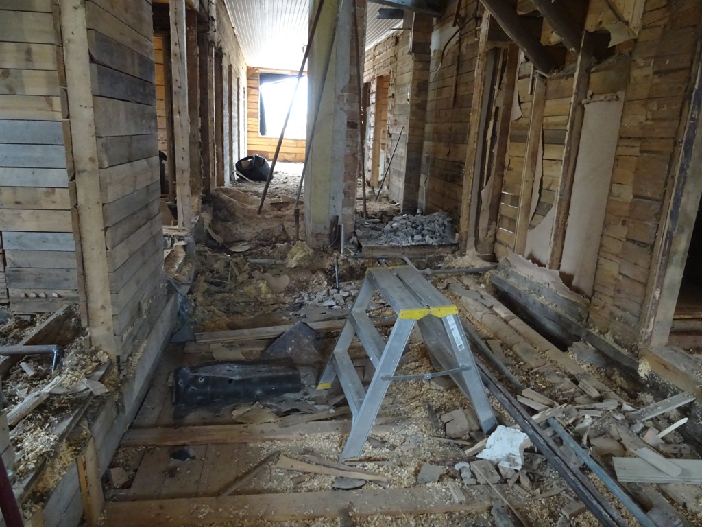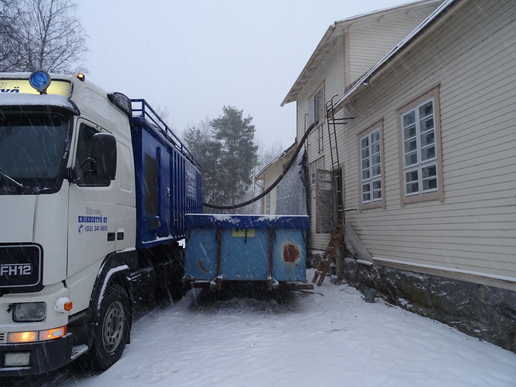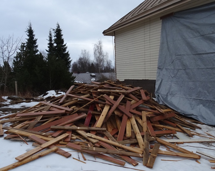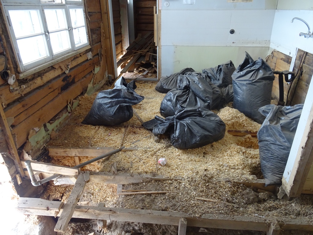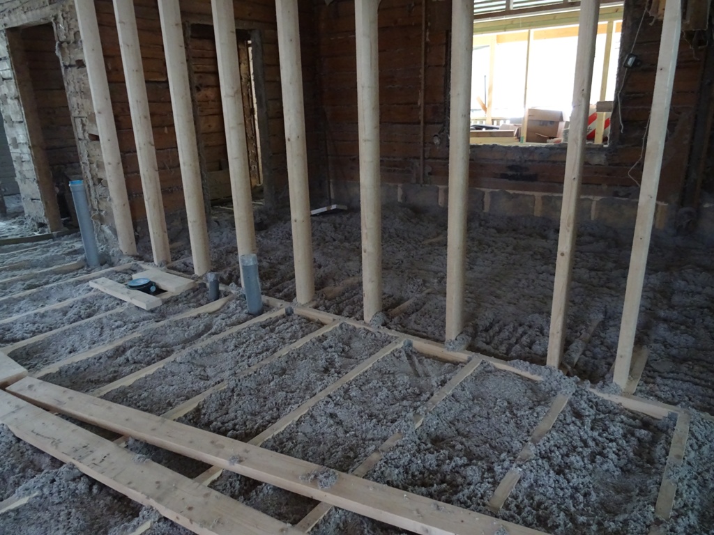 Tässä puru matkalla ulos rakennuksen välipohjasta.