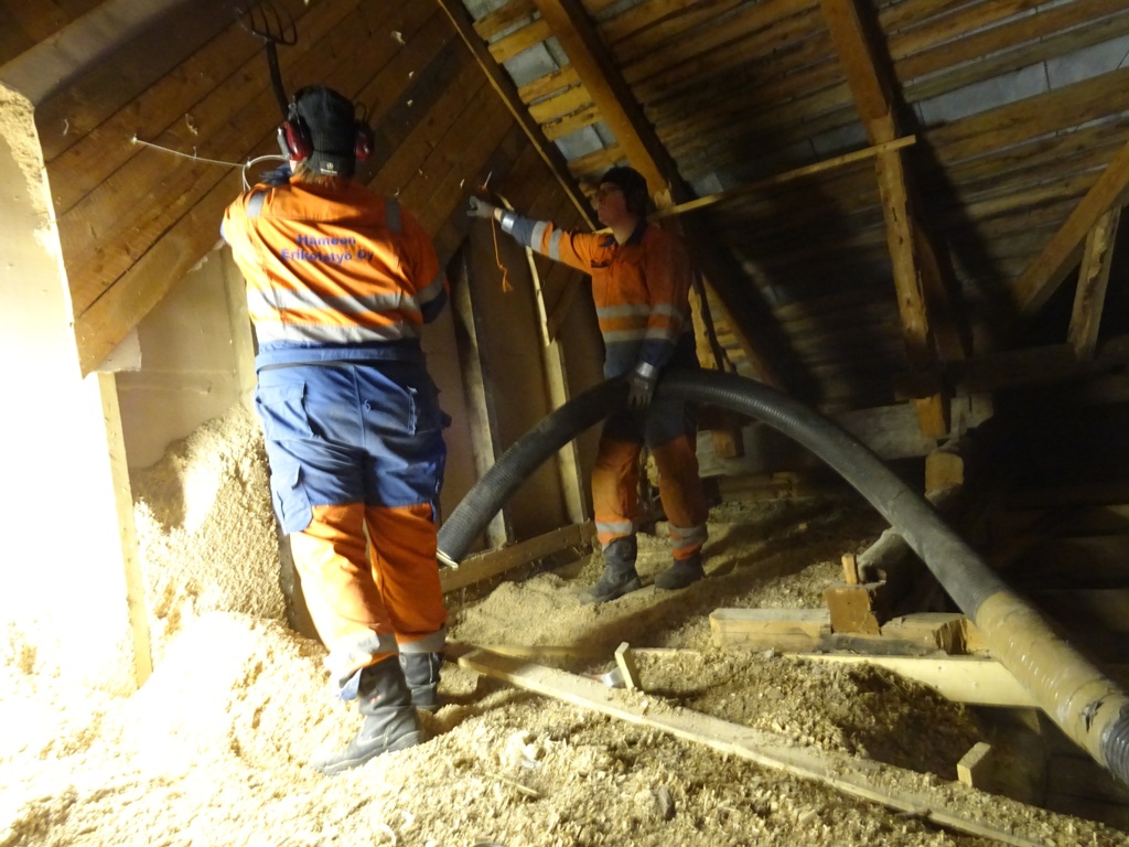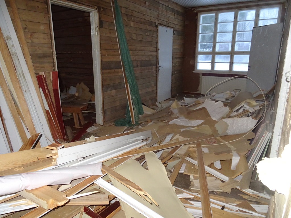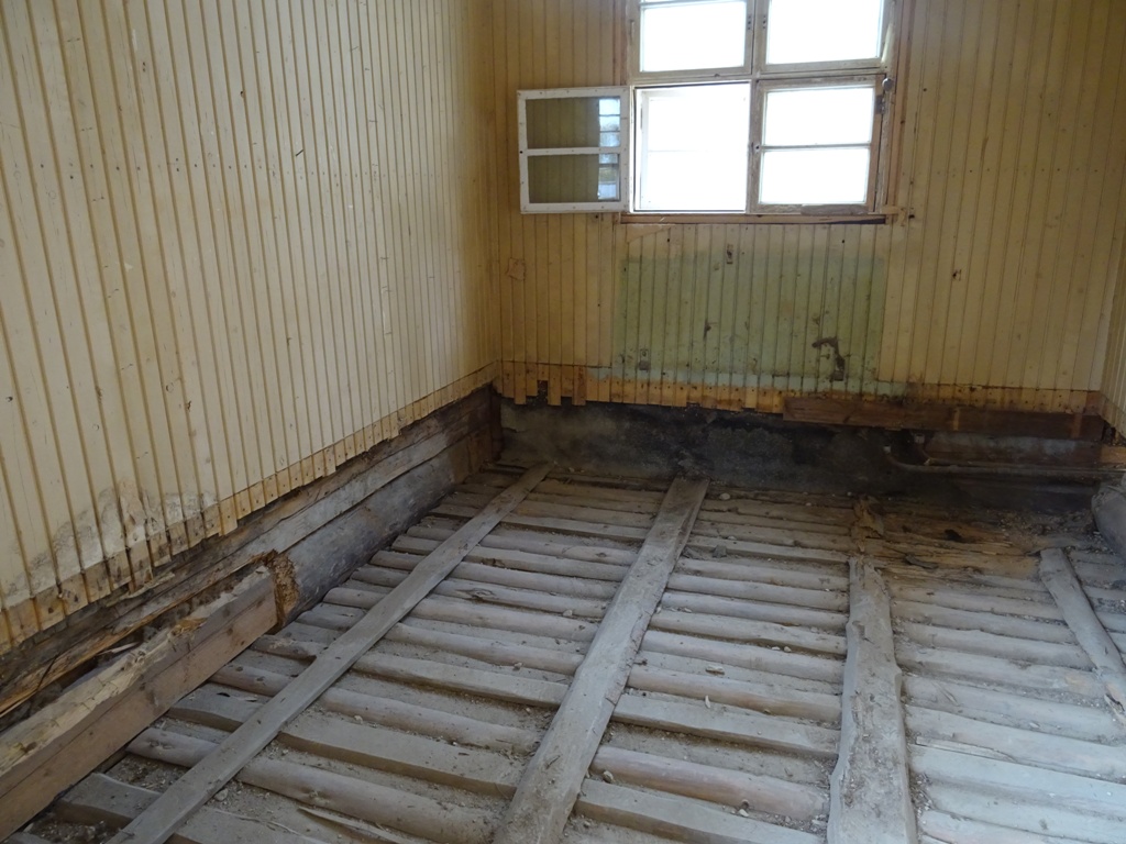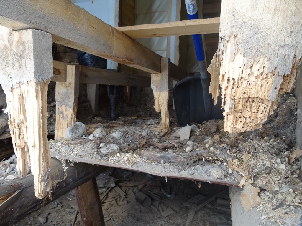 Tässä puru matkalla ulos rakennuksen välipohjasta.