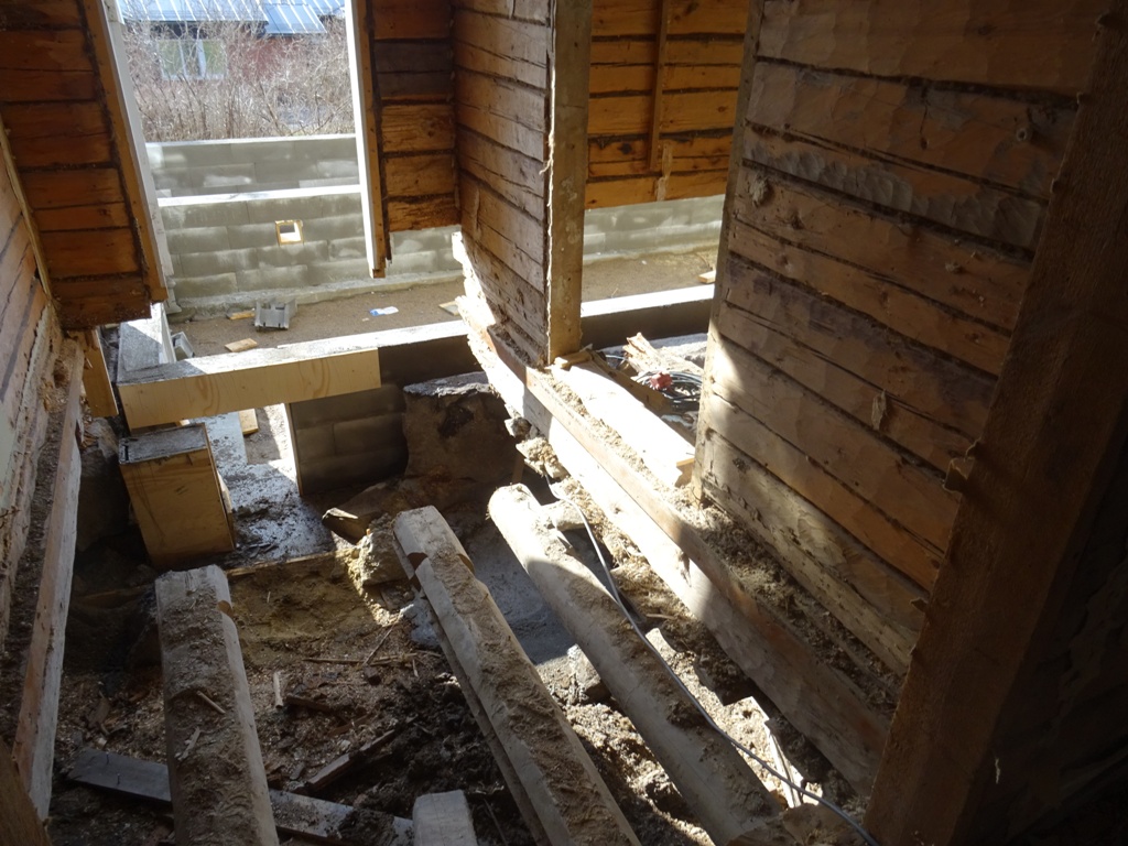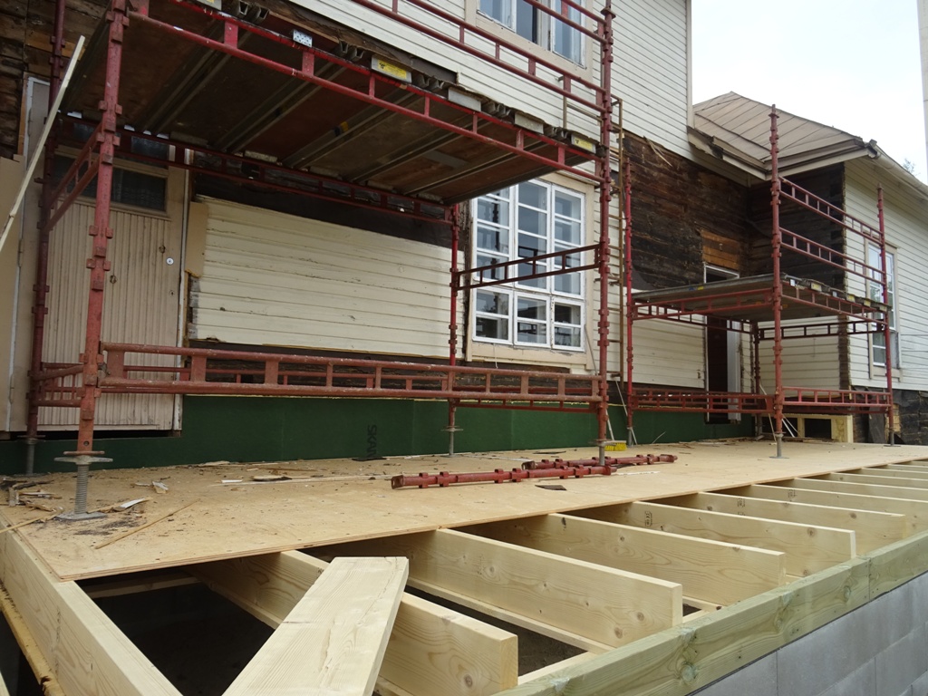 Alimmaisa hirsiä korvataan paikoitellen uusilla rakenteilla.