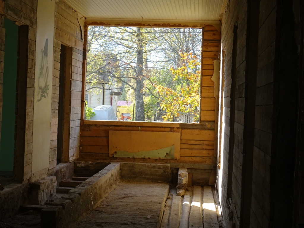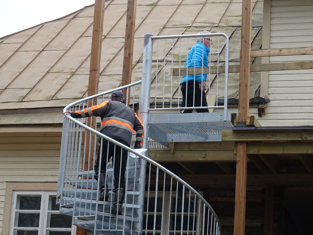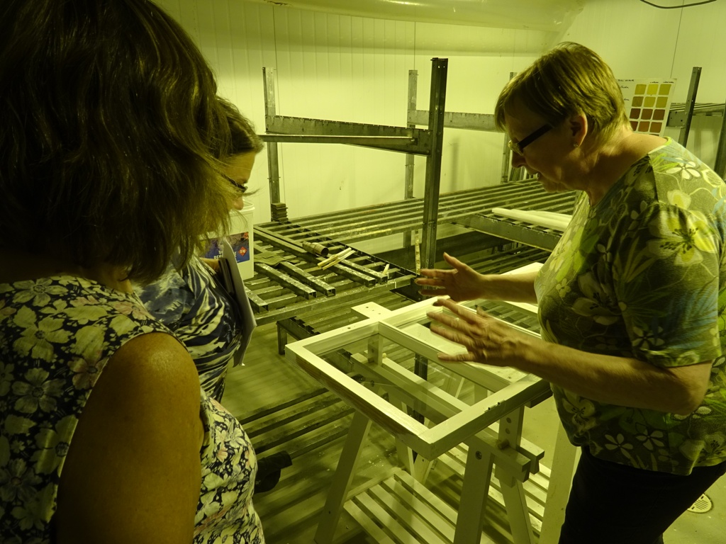 Talon isojen päätyikkunoiden entisöinti etenee Terhin ikkunaverstaalla.